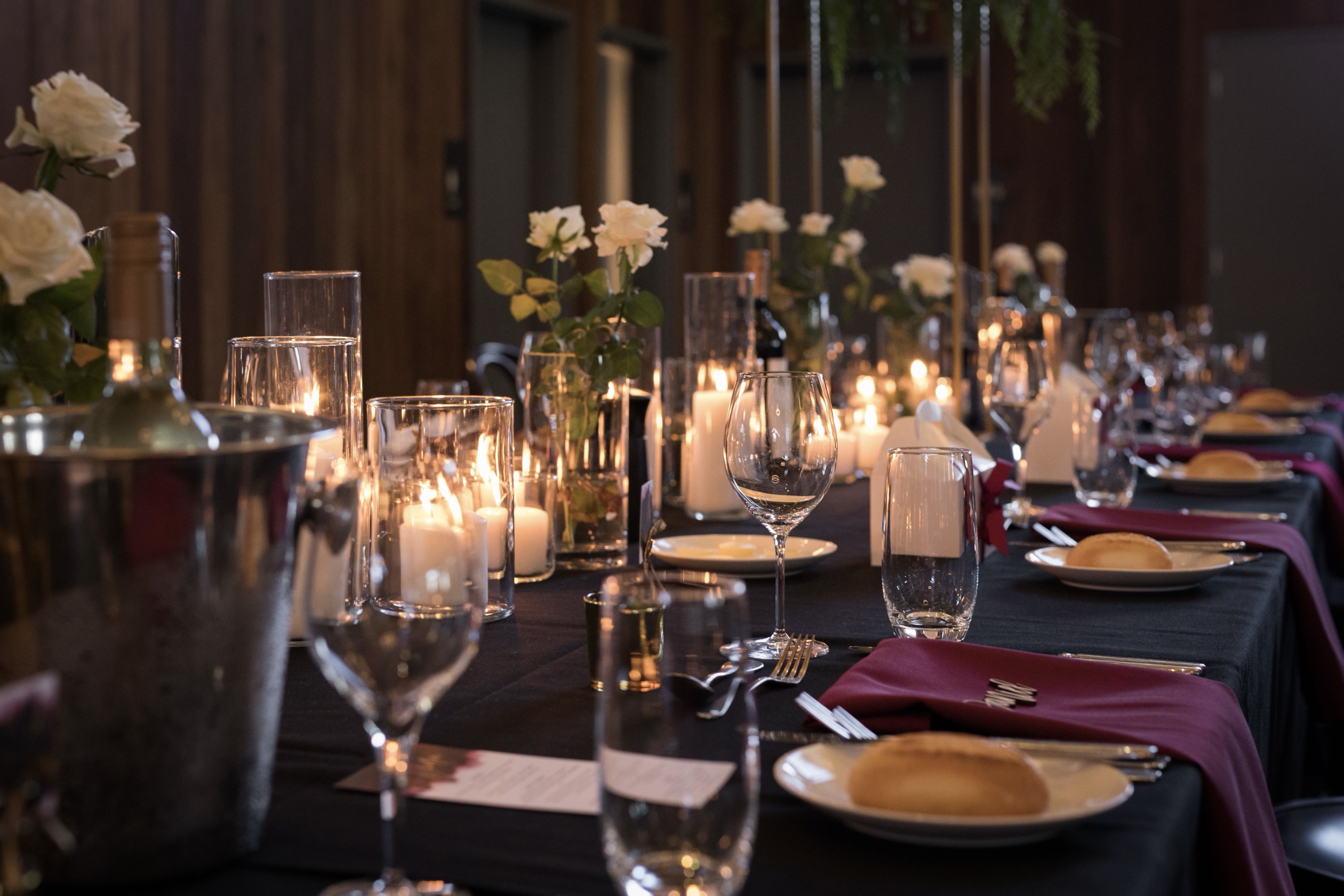 We handle setup. Our team arranges the room, places linens, sets tables, and has everything ready before your first guest walks in. Teardown is on us too. You are not hauling chairs at the end of the night.